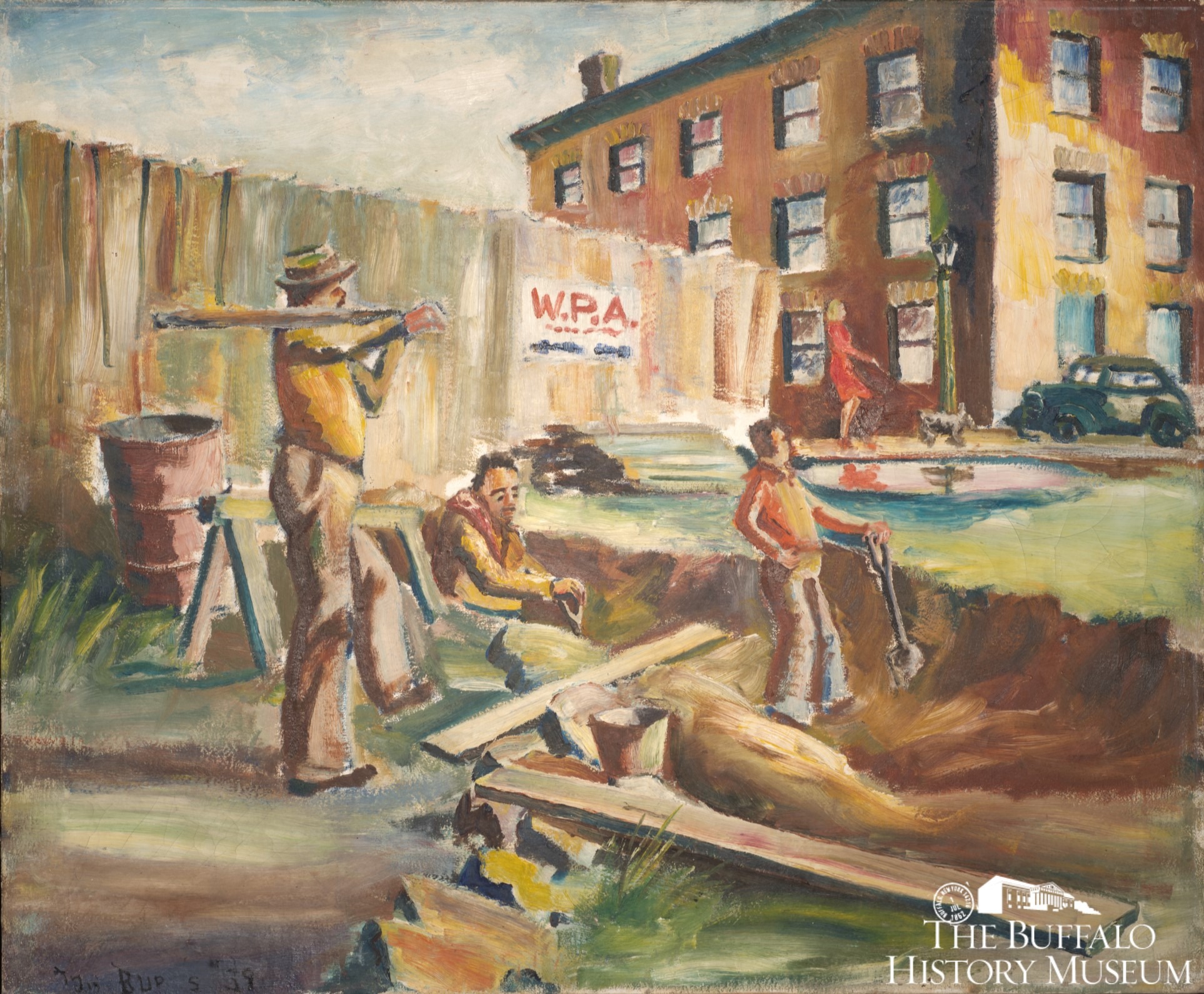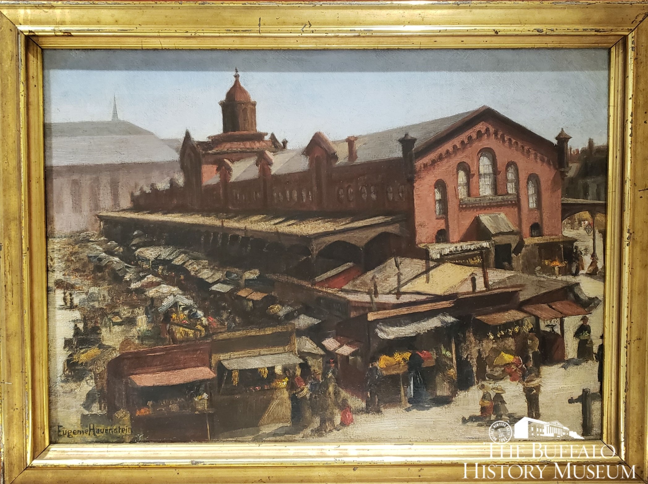 Eugenie Hauenstein was a local artist who studied at the Buffalo Fine Arts Academy and was a member of several art organizations throughout Buffalo. The Washington Market, more popularly known as the Chippewa Market, opened in 1856 on the corner of Washington and Chippewa Streets. When it closed in 1965, it was the oldest outdoor farmer’s market in Western New York.
