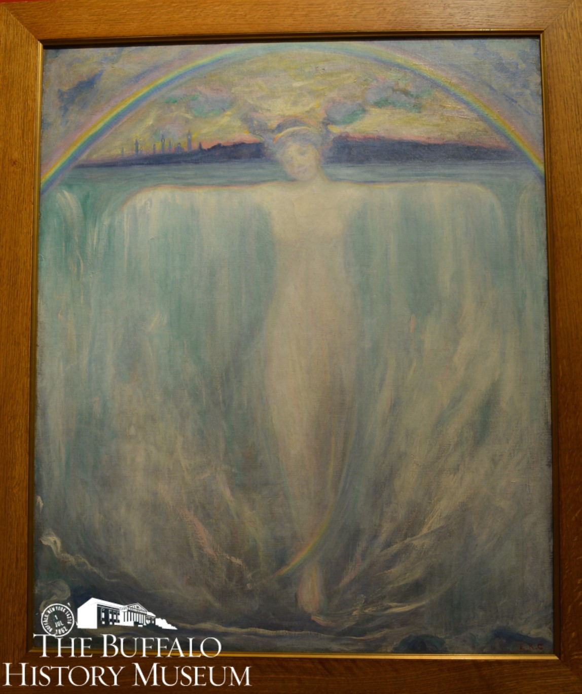 "The Spirit of Niagara" by Evelyn Rumsey Cary. This painting won a design competition and formed the central image of posters and many souvenirs promoting the Pan-American Exposition.