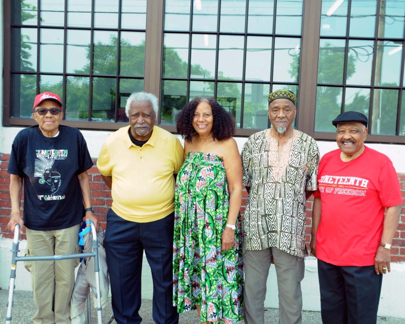 Five of the remaining members of Buffalo’s first Juneteenth Festival. From left, Judson Price, Douglas Ruffin, Gail Wells, Roosevelt Wardlaw, and the Rev. Eugene Pierce.