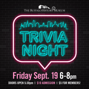 Test your knowledge of our city, pop culture, and beyond at the Museum’s Buffalo History trivia night! Bring a friend, or meet new friends for team-based Buffalo history trivia inside the State Court. Beer and wine will be available for purchase, and prizes will be awarded for the winners! Maximum of four members per team.