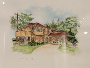![]() | “My piece is a watercolor of Graycliff, built as the summer home for the Darwin Martin family but designed specifically for Isabelle Martin by Frank Lloyd Wright. Built between 1926-31 it is one of only 5 homes Wright designed in the decade between 1925 and 1935. An example of his Organic Style, it is notable for many unique design features and is a gem in Buffalo’s rich architectural history.” |