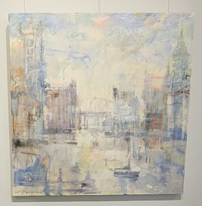 ![]() | “My painting is a view inspired by the Buffalo river and the industrial silos, looking west from Ohio Street down past the “cheerios silo”, the hockey arena, and onward to the Skyway. I had a friend who used the Japanese term “shibumi” in his life to focus his outlook on the world. Shibumi teaching in the visual sense appeared to focus his outlook of the environment towards subtle tones of color and harmony. Shibumi as I understand, gives the guidance to find the beauty in both the industrial decay, the natural rhythms, and our sense of it all. As a post-industrial Buffalo returns to the river, I feel the title “Buffalo Shibumi” make some sense.” |