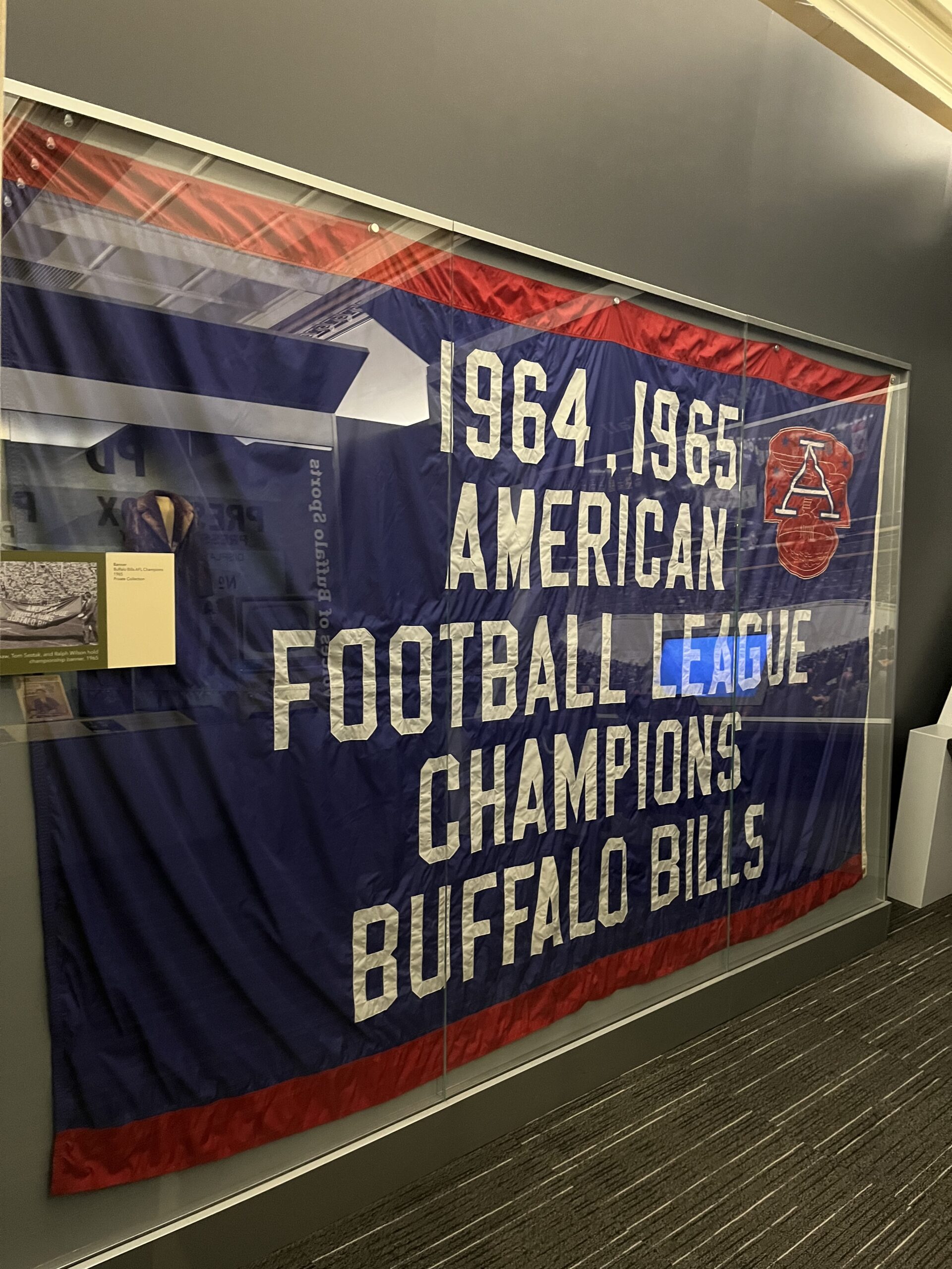 Whenever anyone tells you that The Buffalo Bills never won a championship, bring them here to set the record straight. This pennant highlights the Bills’ two championship wins in 1964 and 1965 within the American Football League, which would later merge into the NFL.