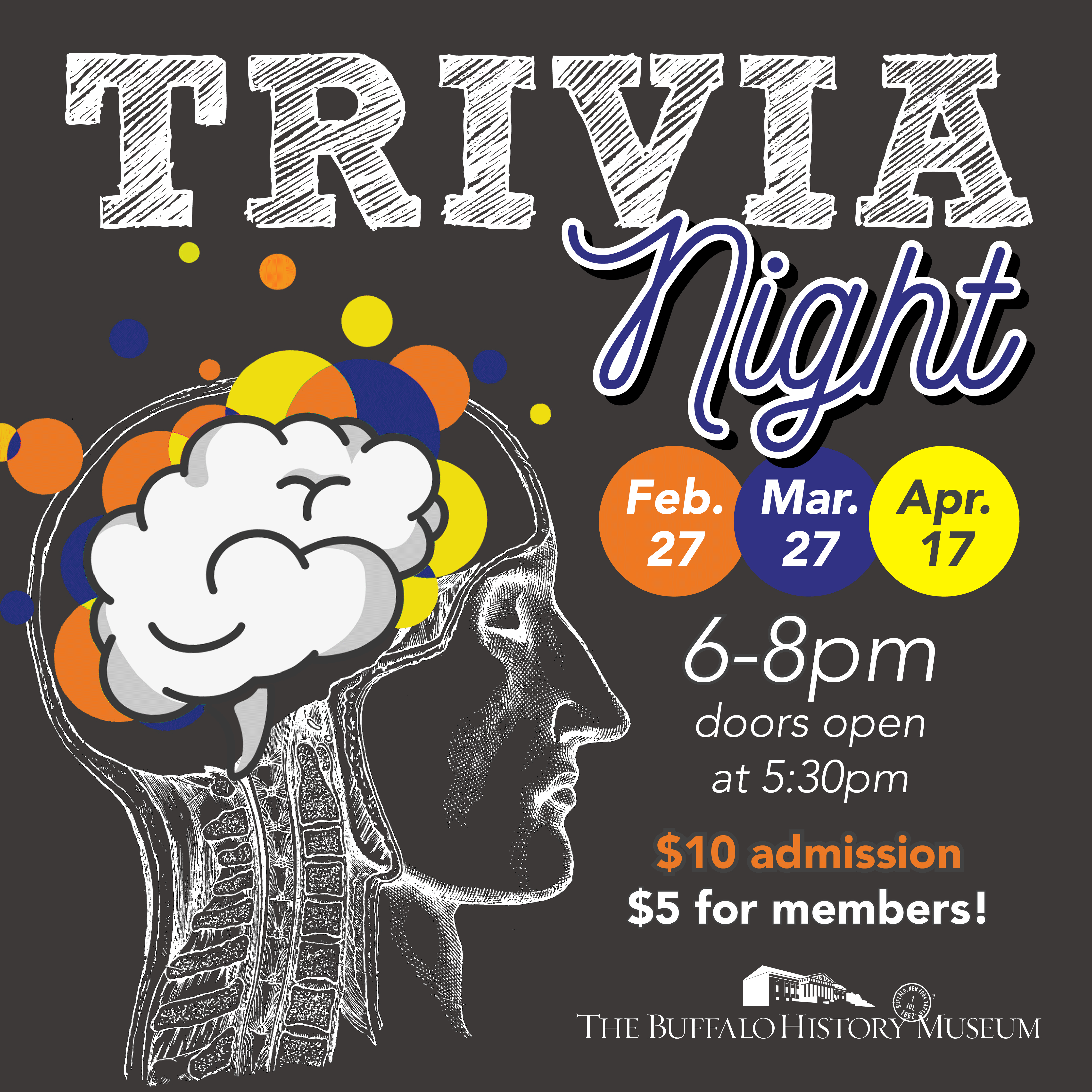 Test your knowledge of our city, pop culture, and beyond at the Museum’s Buffalo History trivia night! Bring a friend, or meet new friends for team-based Buffalo history trivia inside the State Court. Beer and wine will be available for purchase, and prizes will be awarded for the winners! Maximum of four members per team.… Continue Reading Trivia Night