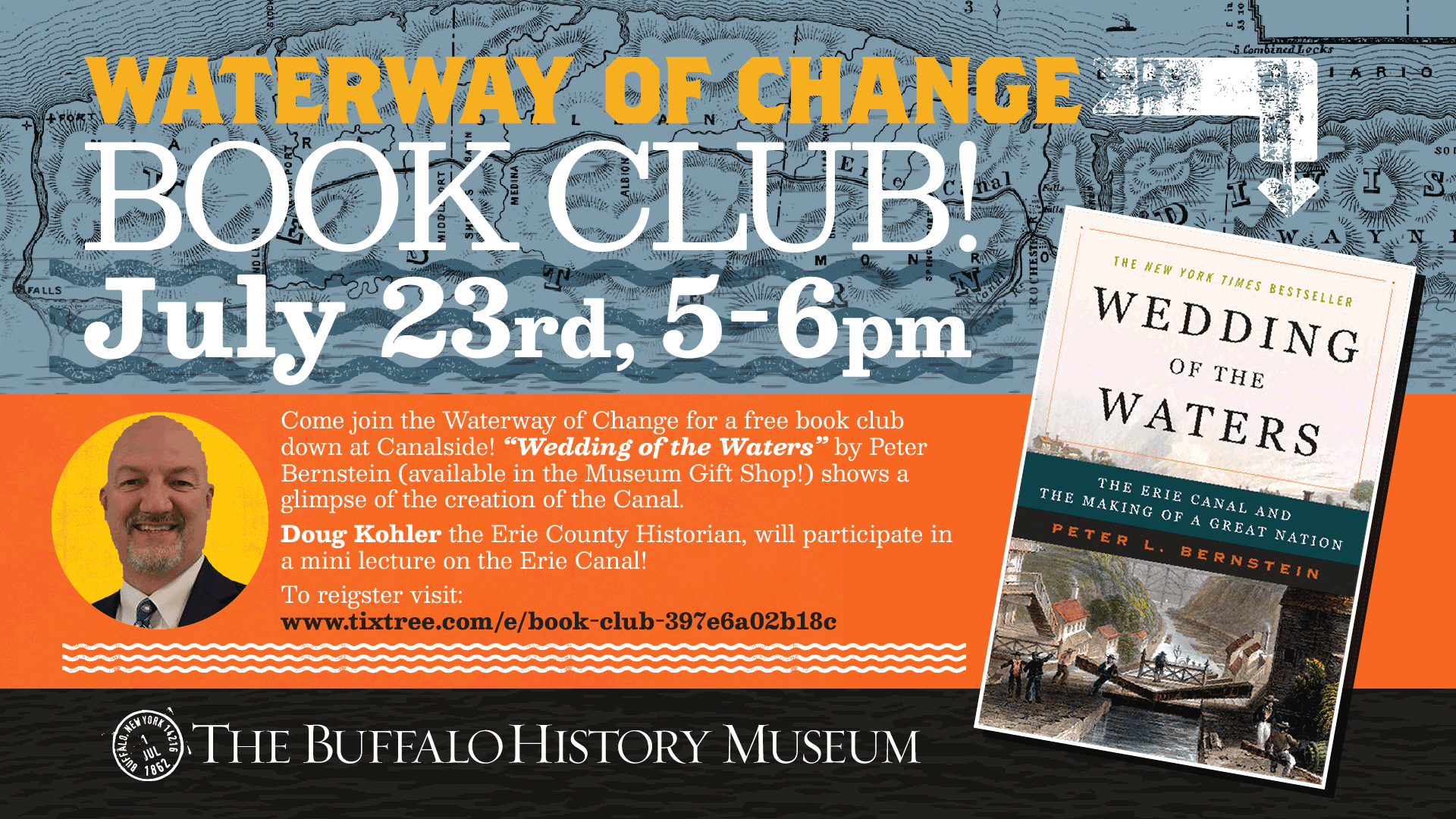 Come join the Waterway of Change for a free book club down at Canalside! “Wedding of the Waters” by Peter Bernstein (available in the Museum Gift Shop!) shows a glimpse of the creation of the Canal. Doug Kohler the Erie County Historian, will participate in a mini lecture on the Erie Canal! Register for the… Continue Reading Waterway of Change Book Club