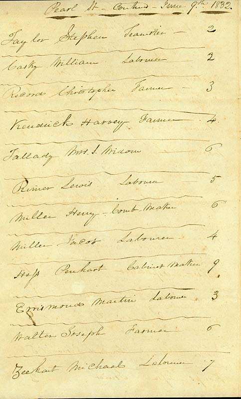 A page from Leonard P. Crary's original census, taken June 9, 1832 for his second directory.